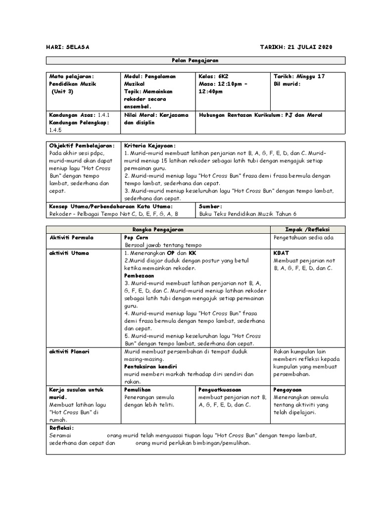 Contoh Rph Pendidikan Muzik Rekoder Tahun 6 Pdf